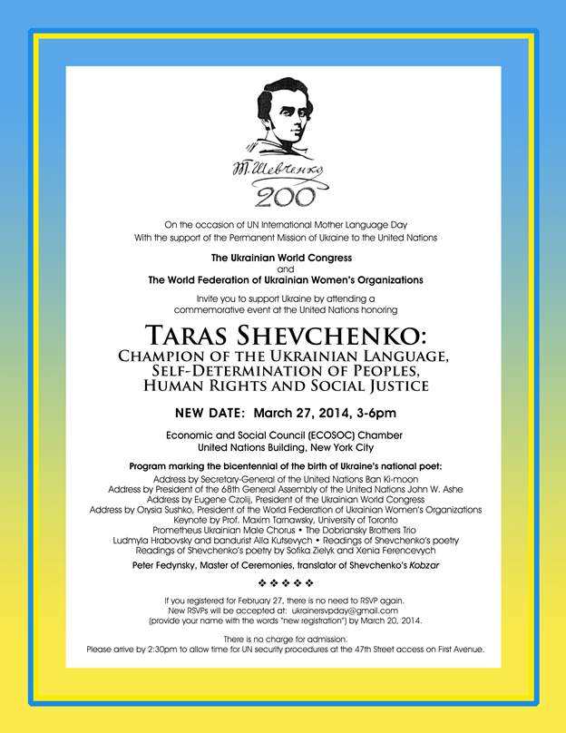 [Aaus-list] Please RSVP your attendance to March 27 UN event in honor of Taras Shevchenko